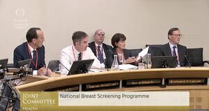 Representatives of BreastCheck and Professor Arnold Hill at the Oireachtas Health Committee this morning