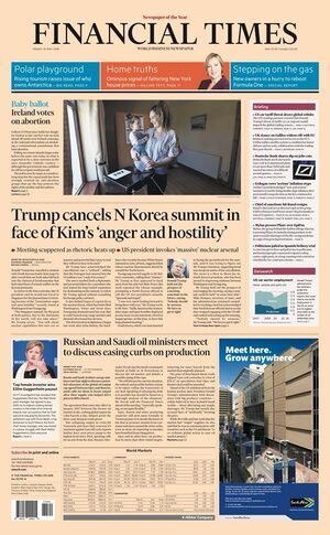 Wow! The pink-coloured Financial Times headlines it, in blue, as a BABY BALLOT.