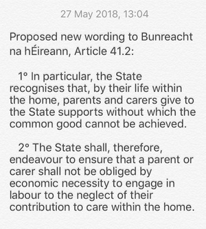 Now that we’ve Repealed the Eighth, can I propose we Amend 41.2? There is a positive right there which I feel should be preserved but its deeply gendered language has to go.