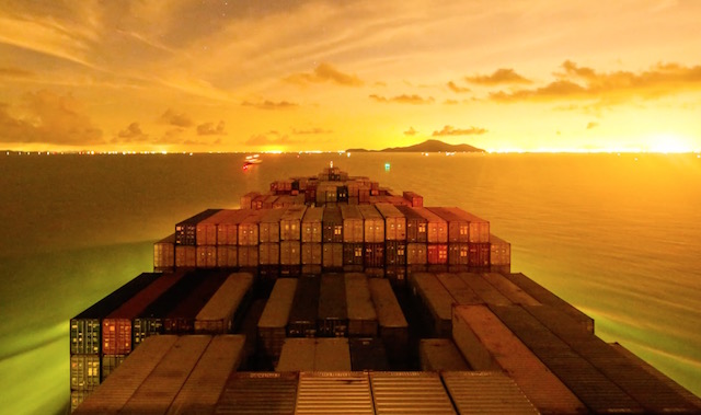 Early April 2018 near the coast of Hailuoto, Finland as a pilot prepares to board a moving ship heading for the port of Oulu.