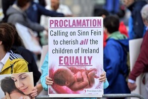 Pro-life protestors gather outside the Sinn Féin Ard Fheis. Sinn Féin actively campaigned to repeal the Eighth Amendment. This weekend, it will formally clarify its position on the Government’s plans to legislate for abortion up to 12 weeks.