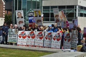 Pro life lobby demonstrating out side the conference of the political wing of the provisional IRA and inside a exPLO terrorist addresses the delegates spouting the usual bile