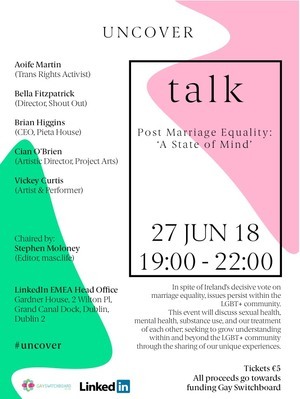 A talk tomorrow night at LinkedIn’s HQ in Dublin presented by Gay Switchboard Ireland as part of the Uncover Project,