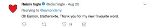 Twitter has its moments all the same. This from Fíontach Hyde to @Gem.