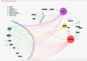 The larger nodes represent the locations the staff were transferred between: from residential to day schools, to the order houses, to the option to dismiss. The larger the node, the more transfers in and out of that institution.