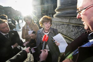 Minister for Communications, Climate Action and Environment Richard Bruton speaking at Government Buildings after Peter Smyth’s Report on his review into the procurement process for the National Broadband Plans was published; Soc Dem co-leader Catherine Murphy talks to media after the announcement.