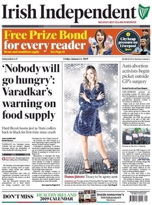 “Taoiseach steals thunder to rain on poor Paschal…That [exchequer surplus in 2018] is very good news indeed. But the trouble was, it was the finance minister’s good news. Mr Donohoe was due to unveil the glad tidings at a press conference on his own turf a couple of hours later, when publishing the exchequer returns for 2018.”