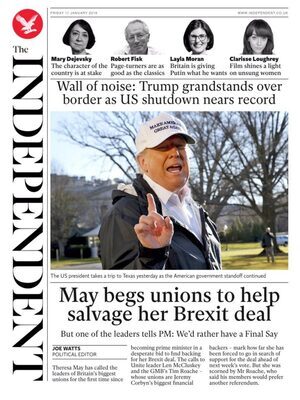The Independent and Times say Theresa May is reaching out to the Tories’ arch enemies in the unions (the Shinners are probably next on her dialling list).