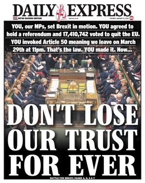 “We are really playing with fire if we think that by coming up with all sorts of complicated amendments and delaying tactics, we can fool the British public . . . we will reap the whirlwind. People will feel betrayed. People will feel there has been a great conspiracy by the deep state of the UK, the people who really run the country, to overturn the vote” said Boris Johnson yesterday