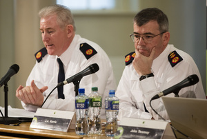 Assistant Garda Commissioner  Pat Leahy (left) and Garda Commissioner Drew Harris facing questioning from the Police Authority today after  Mr Harris apologised in public, for the Garda Youth Diversion Programme