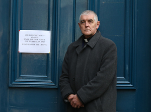 Anglican Archbishop of Dublin Michael Jackson (shamone!) and Catholic Archbishop of Dublin Diarmuid Martin along with Garda Supt Pat Leahy inspect damage to the church’s crypt and to The Crusader, an 800-year-old mummified corpse who had its head decapitated by vandals.