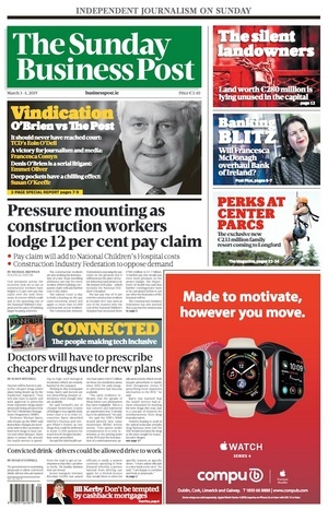 The Sunday Times has another angle to the Sunday Business Post story. Did other papers not have journalists covering the case? According to ABC circulation 60,000 copies of the Mail on Sunday were bought on average in the last audit (and about 30,000 per edition of Irish Daily Mail). If the Mail pull out of Ireland (it is currently looking for voluntary redundancies) where would those 60,000 go? To the Sunday Indo or to the Sunday Times?