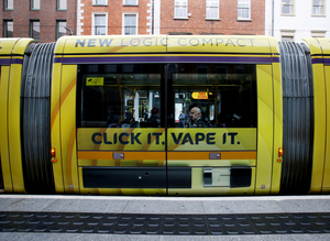 Shreds of this tram wrapping will be collectible in years to come after they discover that vaping gives you lymph cancer