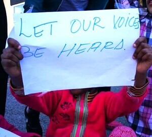 Students wore duct tape on their mouths to symbolise those that live in direct provision’s fear in speaking up in case it would negatively affect their asylum application.