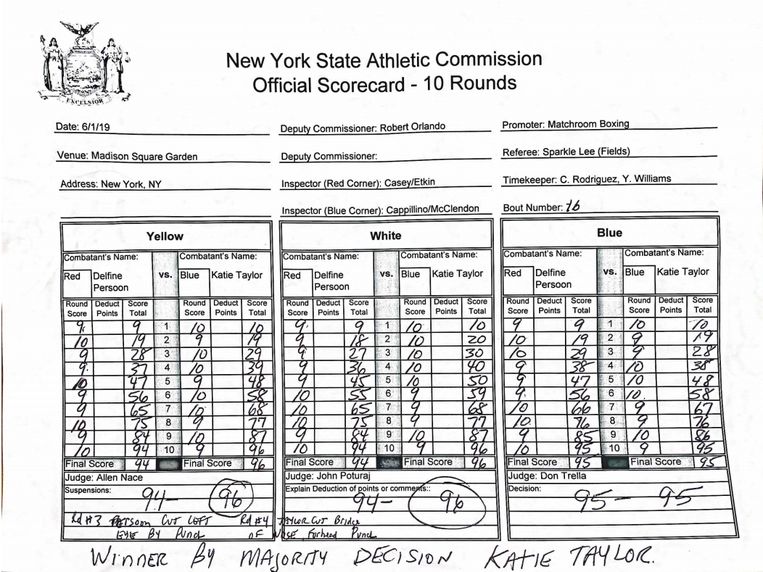 Katie Taylor’s scorecard from NY