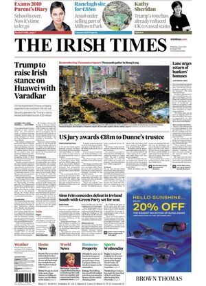 Trump wants Ireland to cut ties with the Chinese tech/mobile phone company Huawei.