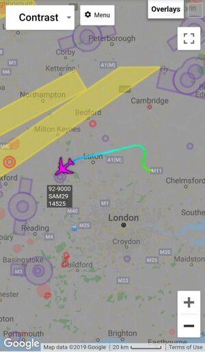 SAM29 USAF 92-9000 VC-25A out from Stansted, positioning to Shannon