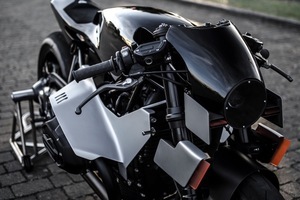 Commissioned by BMW Motorrad for the Wheels and Waves festival in Biarritz, the Type 18 is a stripped back version of the already retro styled BMW R Nine T with a series of interchangeable panels including ‘wings’ referencing BMW’s roots as an aircraft manufacturer.