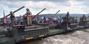 Four M3 amphibious rigs do an impressive thing at a bike festival in Großenwieden, filmed by German YouTuber HD1080ide.