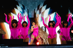Dressed for the beach rapper Cardi B closes the Longitude Festival with a tribute to Baphomet.