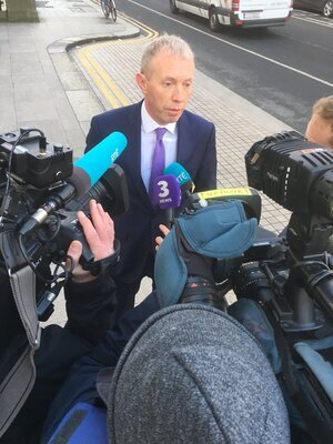Fianna Fáil Leader Micheál Martin speaking to the media yesterday at The Portico, Leinster House with Seanad Leader Catherine Ardagh