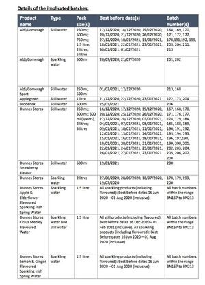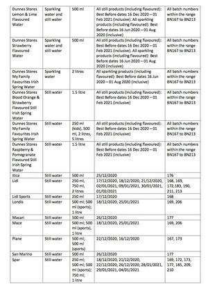 The FSAI is advising consumers not to drink the implicated batches of water, and those who have – and are now feeling unwell – to contact their GP.