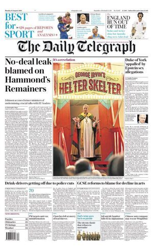 After the attacks on Prince Andrew (Daily Mail and Mirror) and Prince Charles (by association with Louis Mountbatten, Sun and Sunday Times), I was surprised not to see in the Telegraph today a US-tinted attack on the Queen, what the footman saw, that type of thing, smearing pheasant blood over her unmentionables and summoning the corgis, maybe. I mean, if Establishment papers are capable of fingering Andrew as a paedo (he denies sexual contact with girls linked to Epstein) and throwing mud at Charles (by association), why stop there?