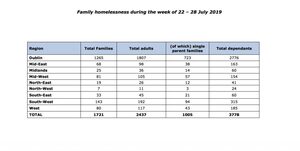“While the number of family presentations nationally in August has increased by 13 overall, the figure for Dublin has fallen by 32. “