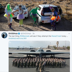 Defence Visual Information Distribution Service (a communications service for the US military) has apologised after a tweet (above) appeared to threaten people visiting Area 51 (top).