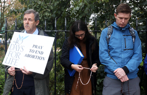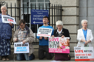 Pro-Life protesters pray to end abortion while standing opposite Holles Street Maternity Hospital.