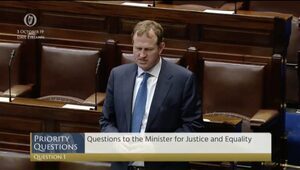 Fianna Fáil’s justice spokesman Jim O’Callaghan (above) in the Dáil this morning on the recent withdrawal of a tender to provide a Direct Provision centre at a hotel in Oughterard, County Galway.