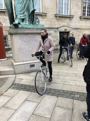 The Taoiseach off on his bike ride in Copenhagen with the Danish PM wearing a snood-like device which he informs me is like an airbag. pic.twitter.com/luJAZADtdv