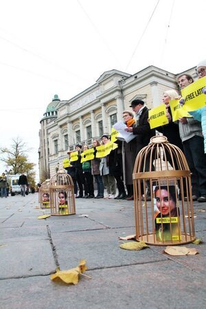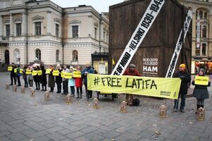 Members and supporters of Amnesty Finland hold a demonstration in support of Princess Latifa who has not been seen in public for 18 months, since she reportedly attempted to flee Dubai.