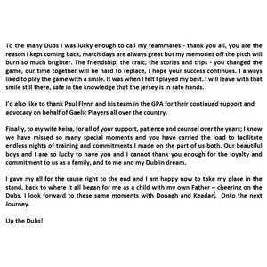 Dublin GAA star Bernard Brogan announces his retirement from Dublin inter-county football.