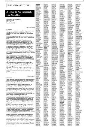 A letter to Taoiseach Leo Varadkar, signed by more than 1,000 people, has been published on page three of The Irish Times.