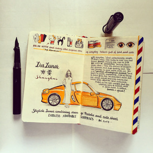 The mixed media journals, incorporating labels and postage stamps, document his ongoing, enviable globetrotting – each page themed around an experience or a thought he had while travelling through the area featured.