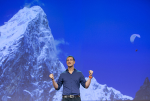 Edward Michael Grylls OBE, known as Bear Grylls, former SAS (boo, hiss) serviceman, survival instructor, honorary lieutenant-colonel, adventurer, writer, television presenter and businessman speaking on stage during day two of the Pendulum Summit 2020.