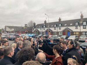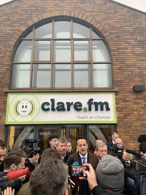Taoiseach Leo Varadkar addresses media outside Clare FM this morning
