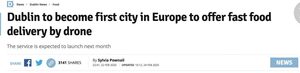Recent headlines and news reports about the launch of a drone food delivery service