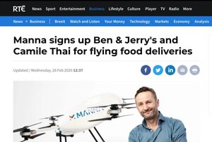 Manna signs up Ben & Jerry’s and Camile Thai for flying food deliveries (RTÉ)