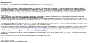 Provost of Trinity College – all lectures being moved online as precautionary measure "bringing groups together we should minimise as much as possible, to minimise the chances of the spread of #Coronavirus.." Dr Patrick Prendergast #COVID2019 #COVID19