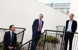 Minister for Health Simon Harris with Taoiseach Leo Varadkar and Chief Executive Officer of Alone Sean Moynihan (above right)  at the Alone HQ where Mr Harris and Mr Vardkar paid tribute to the organisation’s staff and the service they provide for older people.