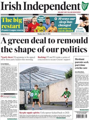 The joke FFG anti citizen “program for government” being sold to the Greens is basically an intelligence test for their membership. Despite their two faced hypocritical lying numptie leadership swearing that they would not go into government with Fine Gael, are the membership going to reject the lies? Or will they demonstrate they also have no principles as well and behave like compliant little vegetables, accept it and forever be damned by the electorate.