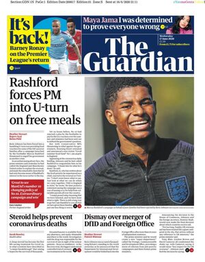 Comments all over the football forums from fans of each premier league club promising Marcus Rashford a standing ovation. ‘This is England’ he tweets, showing what can be achieved when everyone pulls together. Unlike Johnson’s government who divide, conquer and starve their children.