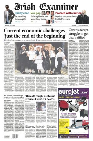A major drug breakthrough in treating C-19 and some dreadful economic data from Ireland’s Central Bank on the front pages.