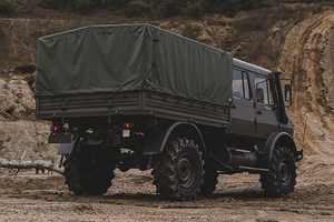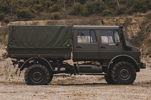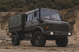 This vehicle, finished in olive green and matt black with raised suspension and rugged off-road tyres has a mere 3,235km on the clock and can be yours for about €131,000 (plus shipping)