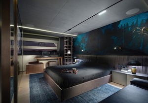 Behold: the Mazu Eightytwo – part ‘day boat’, part super yacht – a 24.5m composite hull craft with a lounge, kitchen, master suite, two ensuite guest cabins, a multipurpose foredeck and terraced steps leading down to the water at the rear. Three Volvo Penta engines cruise at 35 knots with a top speed of 40 knots.