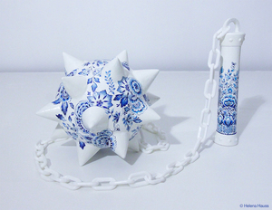 ‘Hell Hath No Fury’: a collection of martial delft-style ceramics by French artist Helena Hauss who describes the project as: