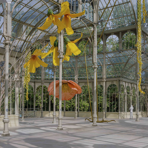 “To a raven and the hurricanes which bring back smells of humans in love from unknown places”: an elaborately titled but rather adorable exhibition at Madrid’s Reina Sofia’s Palacio de Cristal by Kosovar visual artist Petrit Halilaj in collaboration with his fellow artist (and partner) Álvaro Urbano.