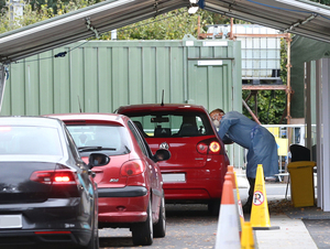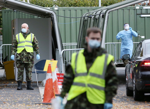 The Aviva Stadium Community Testing Centre where members of the Defence Forces are supporting the HSE in a swab-as-you-drive initiative.